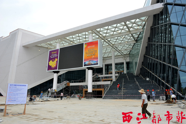 隨著第十一屆梧州寶石節的臨近,承辦節慶活動的各個場館已進入布展階段。 何鎏/攝