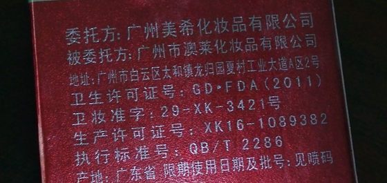 據(jù)執(zhí)法人員介紹,正規(guī)的化妝品護膚品應(yīng)像此產(chǎn)品一樣,有明確的生產(chǎn)廠家、生產(chǎn)地、衛(wèi)妝準字及生產(chǎn)許可證號、執(zhí)行標準號等,可在國家藥監(jiān)網(wǎng)站上查詢到系列標注。