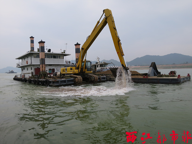 ????梧州航道管理局航道管理科科長陳藝表示,之前洪水期間水流急,上游的沙石被沖刷到下游,部分沙石堆積在水流慢的地方。隨著水位的逐漸下降,堆積的沙石會造成航道水深不足,影響船舶的正常通航。梧州航道管理局針對枯水期的通航情況,從9月起,對布嶺沙、相思洲大崩沙、平南將軍灘、蒙江走馬灘、蒙江河口對開航道、石爐角對開航道、長洲18-20#示位標對開航道、長洲14-16#示位標對開航道、中堂灘洲尾石至西江四橋航道較淺航道進行日常維護疏浚施工。全部工程預計今年12月中旬完成。
