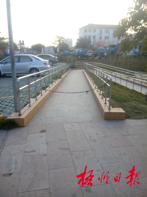 ??? 無障礙通道是專門為殘疾人出行服務的通道,是殘疾人參與社會生活的基本條件,體現了社會對殘疾人士的人文關懷,在很多公眾場所尤其是公園一般都設有無障礙通道專門為殘疾人等特殊群體服務。近日,卻有市民反映,我市玫瑰湖公園的無障礙通道長期被鐵鏈封鎖著,殘疾人士以及一些推著嬰兒車的父母都不能夠通過通道進入公園游玩,覺得很不方便。市民表示,無障礙通道就是方便殘疾人士等有需要的人群通行的,如今卻被園方鎖著,既不方便大家游玩也虛設了這些通道設施。