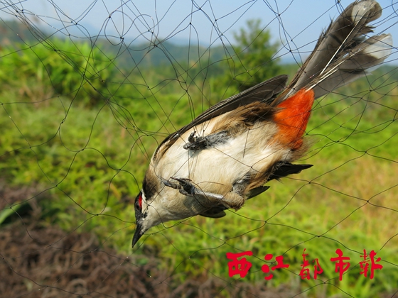 ??? 有鳥類研究專家認為,鳥兒不辭勞苦地遷徙,是為了尋找棲息地,是為生存而戰。然而,當秋冬之交候鳥南遷時,部分違法人員卻在梧州市萬秀區城東鎮扶典村10多個山頭,拉起長達一萬多米的捕鳥網,截殺野生鳥類。