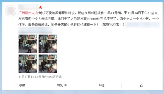 ????“她進門的時候我正用手機發短信,并沒發覺有什么異常?!表n小姐回憶說,見到有人進店,自己就順手把價值四千多元人民幣的蘋果手機放在沙發上,并接過中年婦女的孩子幫忙照看,而中年婦女則到試衣間內試衣。