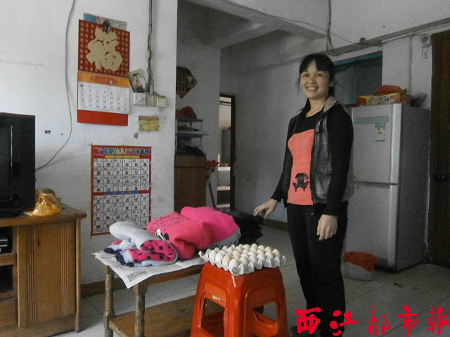 收到熱心市民給女兒捐贈的衣服和雞蛋等物品,李沛英感到十分欣慰。本報記者 紀榮蘭/攝
