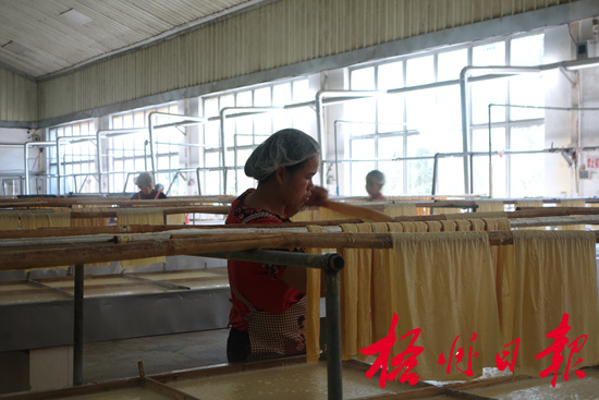 在洪嶺食品有限公司,腐竹這一傳統(tǒng)產(chǎn)品的生產(chǎn)已經(jīng)完全脫離小作坊的模式,工藝流程全部在密封的分隔車間里完成。黃金銘 攝