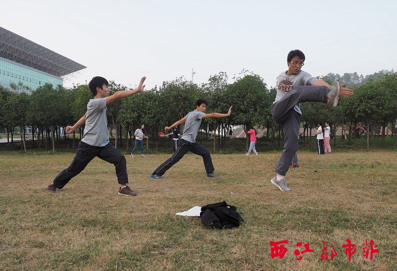 梧州學院武術協會的隊員,每天課后都在操場上訓練。