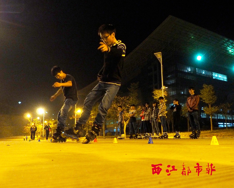 ????除了學生社團活動外,校園里常常能看到學生們鍛煉的身影。每晚7點半至10點半,都會有20多名愛好輪滑的學生在教學樓前空地上練習,每到周末他們還會結伴滑輪滑外出“刷街”。信息與電子工程學院2012級物聯網工程班的周劍東進入大學之后,便愛上滑輪滑這項運動,他說:“滑輪滑出行方便,又能鍛煉身體及平衡性。”