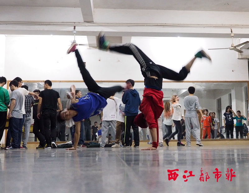 ????據悉,梧州學院“1021街舞團”的成員每周一、三、五晚7點半至9點,都在梧州學院教學樓南樓六樓集訓。該街舞團現有成員約50名,平時除了在校內晚會上演出外,還積極參與校外表演及公益演出。梧州學院信息與電子工程學院2012級計算機網絡班的王胡權是“1021街舞團”的隊長,他從高三時便開始學習街舞。王胡權每周集訓三次,其他時間也常練習街舞。經過幾年的訓練,王胡權的體能、彈跳力及身體協調性得到了很大的提高。“體能測試時,我的坐位體前屈成績是全班最高的。”他說,心情不好時,跳街舞能使自己的壞情緒一掃而光。