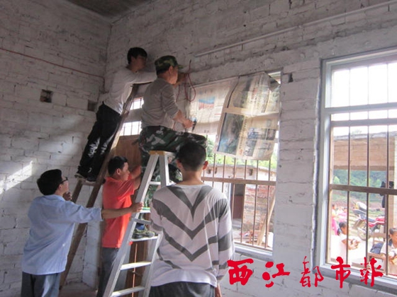 ????西江都市報(bào)訊(記者 紀(jì)榮蘭 通訊員 董曉軍)11月29日一大早,梧州公益群的11名義工自帶工具和午餐,來到藤縣同心鎮(zhèn)平頂村平頂小學(xué)屋高教學(xué)點(diǎn)。義工們給教學(xué)點(diǎn)的教室安裝照明燈具、噴涂墻漆,以及安裝鋁合金窗戶,解決了教室的采光和保暖問題,讓學(xué)生們冬天在教室里上課不再受凍。