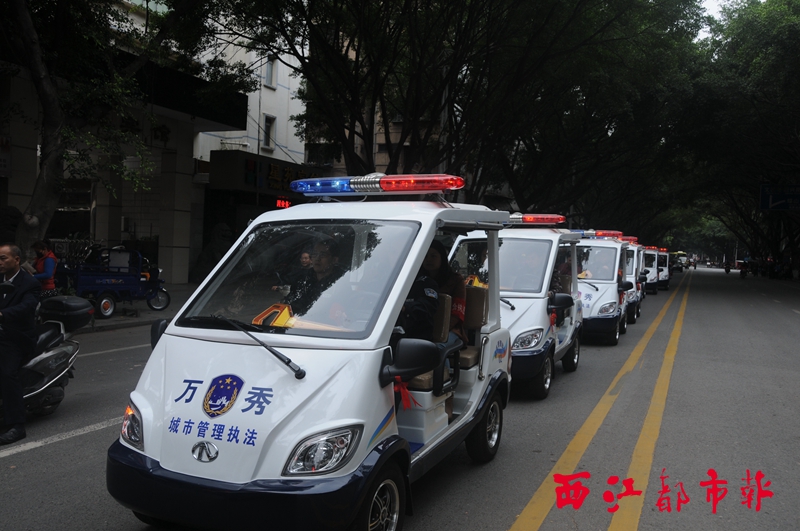 ?12月1日上午,梧州市萬秀區在市二中舊址舉行城市管理執法車輛發放儀式。日前,該區投入50多萬元購置了10輛城市管理執法車,并于12月1日全部發給各街道辦事處、城區城管和環衛部門,方便工作人員對各類城市環境違法行為進行現場查處。 蔣亞平/攝