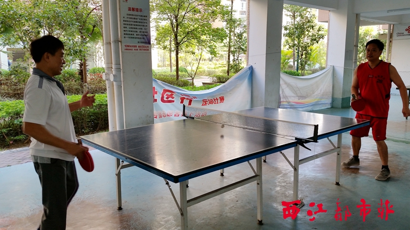 正是本著對乒乓球的熱愛,在2013年4月的一天,剛在藍天港灣小區置業的朱裕進,就跟著小區內的沙頭老鄉,來到17號樓地層打乒乓球。