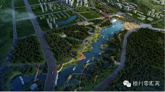?? “泛公園體系”和LID生態技術——蒼海湖周邊以蒼海公園(已建成)、廣西園博園(2015年第六屆廣西園林園藝博覽會舉辦地)、運動公園、水上樂園、古鳳濕地公園、皇沖頂森林公園等構成環湖“泛公園體系”,同時廣泛采用國際先進的LID(低影響開發)生態技術,把生態效應引入城市中。