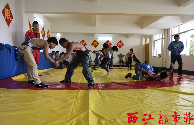 ????在摔跤訓練基地里,每天從早上7時開始,教練和學員們便開始訓練,為的是希望能在2015年的區運會上奪取三枚金牌。