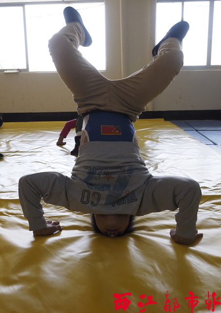 倒立前滾翻是專項柔韌性訓練的一個重要的科目。 |