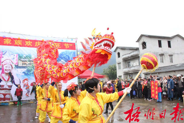 ????當天是農歷十月十六,也是一年一度的瑤族“盤王節”。在蒙山縣的瑤族同胞聚居點,人們穿上節日盛裝,聚集在一起舞龍、唱歌、跳舞,慶祝豐收,紀念先祖。 江永錄 攝