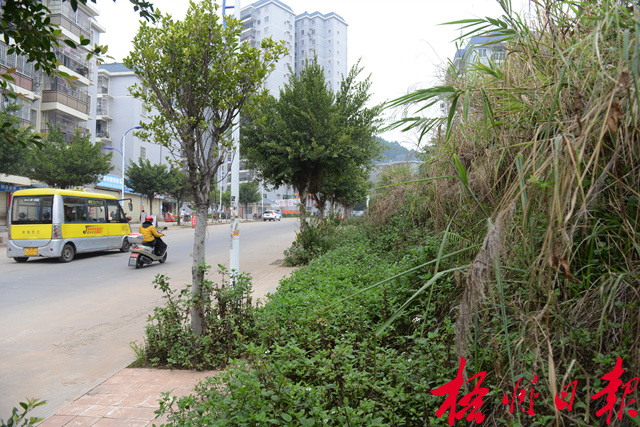 ????在棗沖廉租房小區,一條道路的人行道雜草叢生(攝于12月10日)。