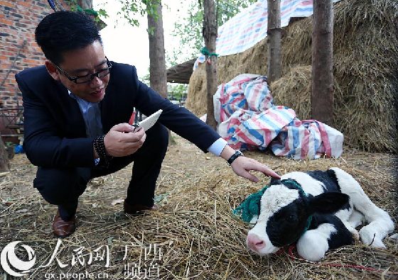 工作之余,一貫嚴肅認真的宋斌看到了一只剛出生不久的小奶牛,一下就樂了,“家里有個八個月大的姑娘,把小奶牛拍給她看看,讓我家小姑娘也開心一下。”