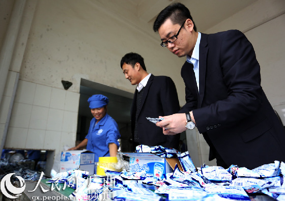 ??? 裝貨車(chē)間里,周軍龍?jiān)谠?xún)問(wèn)工人包裝情況。宋斌則在一邊對(duì)產(chǎn)品進(jìn)行抽檢,他說(shuō),“企業(yè)老總向我們反饋生產(chǎn)情況后,我們還需要自己到車(chē)間看一看,‘突擊檢查’是為了了解是不是在正常的生產(chǎn),這對(duì)于評(píng)估貸款企業(yè)能否按時(shí)回款很有必要。”
