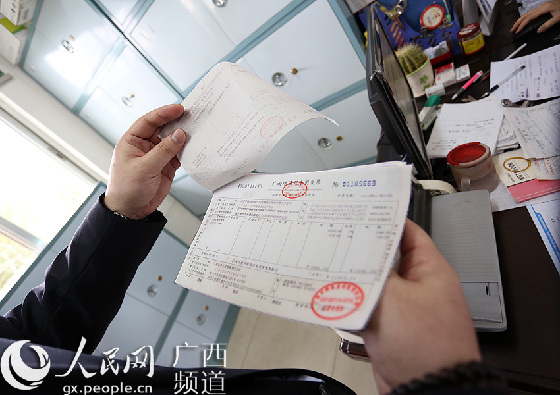 ??? 細心的周軍龍正在查看企業的稅務發票,了解企業財務情況。他表示,這是回訪工作中最重要的一環。
