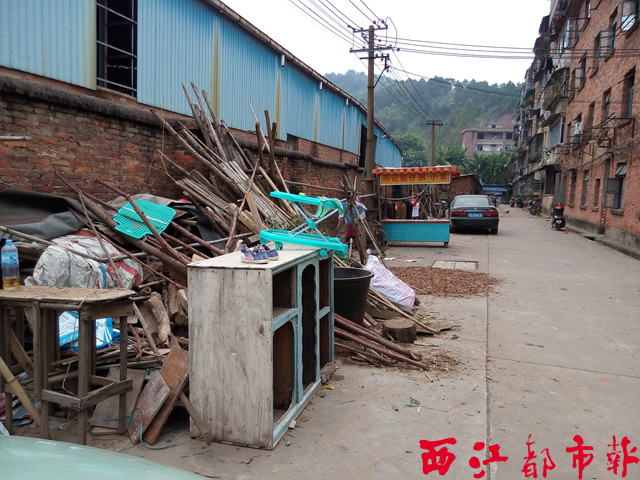 在原梧州市玻璃廠宿舍樓前的空地上,堆放著大量雜物。
