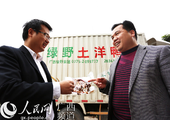 ????綠野集團(tuán)董事長鐘河正在向劉天華展示該集團(tuán)的王牌產(chǎn)品——玉土洋臘鴨。該產(chǎn)品采用新鮮的土洋鴨肉制作,口感獨(dú)特、營養(yǎng)成分高,是不可多得的天然美食。