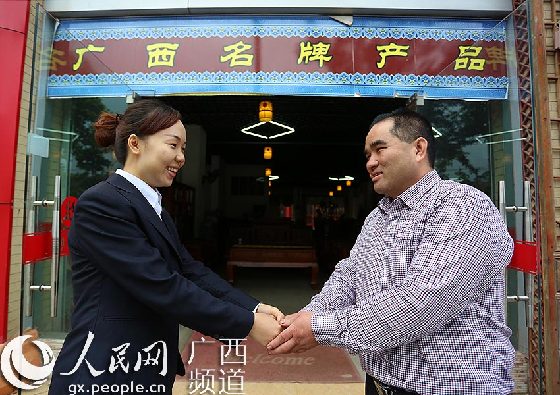 貸后回訪完成后,企業主黃志權跟龐小芬握手表示感謝。(完)
