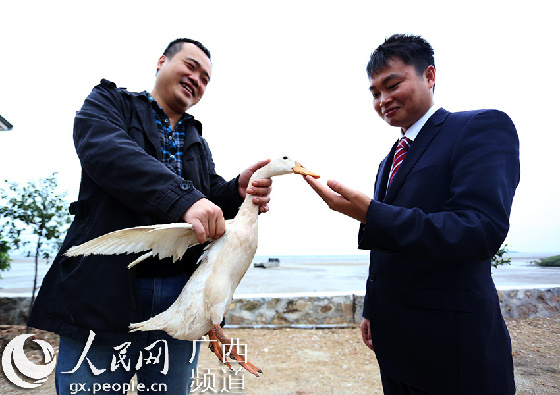 ??? 陳白云一邊聽著企業(yè)主鄒鋒介紹今后的發(fā)展方向,一邊仔細地觀察海鴨。