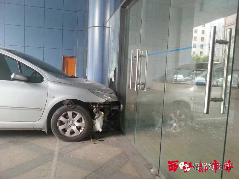 ??? 西江都市報(bào)訊(記者 楊珊)12月14日,一名梧州網(wǎng)友通過微信發(fā)布:在梧州市文化中心影城側(cè)門,一輛銀色小轎車突然沖上臺(tái)階,直接撞向影城緊閉的玻璃大門。該名網(wǎng)友還表示,事發(fā)時(shí),小轎車上的女司機(jī)腳穿高跟鞋,而且正在接聽電話。