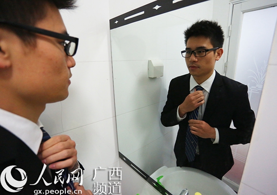 ?作為“跑男團”的新兵,徐強沿襲了跑男們一貫的認真。每天上班前,他都會在更衣室里認真地整理領帶,他表示作為客戶經理,良好的第一印象就是對客戶的尊重。