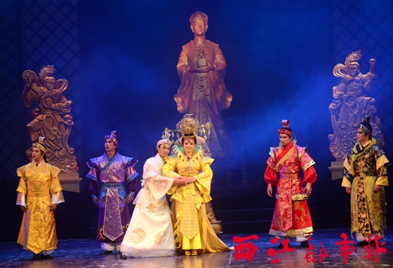 12月17日晚上,大型情景歌舞劇《情·鴛鴦江》在梧州市文化展覽中心精彩上演,該劇取材于龍母傳說和鴛鴦江的人文風景。 本報記者 蒙紹松/攝