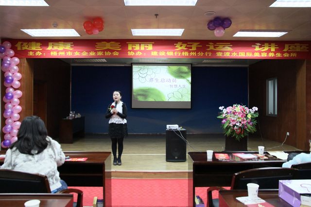 ????3月5日晚,在梧州分行副樓3樓會議室舉辦了一場以“健康、美麗、好運”為主題的回饋高端女性客戶專題講座。該講座由梧州分行聯(lián)合梧州市女企業(yè)家協(xié)會、壹渡水國際美容養(yǎng)生會所共同舉辦。