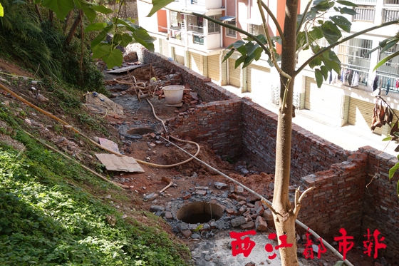 ????近日,湯先生接受記者采訪時(shí)表示,小區(qū)內(nèi)的該堵?lián)跬翂σ研藿ǘ鄷r(shí),許多地方出現(xiàn)了不同程度的開裂。如果違建者再將墻體附近挖空,勢(shì)必會(huì)導(dǎo)致?lián)跬翂M(jìn)一步開裂。而每逢雨季,大量雨水都會(huì)沿墻體所在斜坡的頂部沖刷下來(lái)。一旦把擋土墻沖倒后,大量磚塊會(huì)直接落在小區(qū)內(nèi)的主干道上?!澳菚r(shí)候,后果真不堪設(shè)想。”湯先生說(shuō),自從上次向相關(guān)部門反映小區(qū)內(nèi)違建現(xiàn)象后,相關(guān)部門已經(jīng)加強(qiáng)了巡查,但是違建者仍繼續(xù)在原基礎(chǔ)上加建房屋。