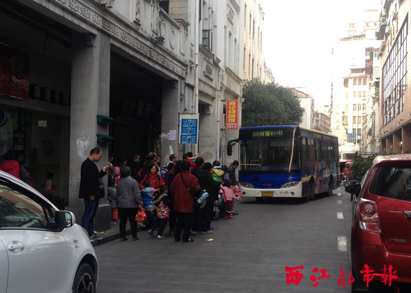 ?12月16日下午4時許,在大中路公交車站前,公交車還沒靠站,不少乘客已站在機動車道候車。當公交車靠站時,很多老人和孩子爭先恐后地靠近公交車,這樣不顧安全的做法十分危險。 謝韻/攝
