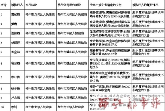 ????序號 被執行人 執行法院 執行依據制作單位 法律生效文書確定的義務 被執行人的履行情況