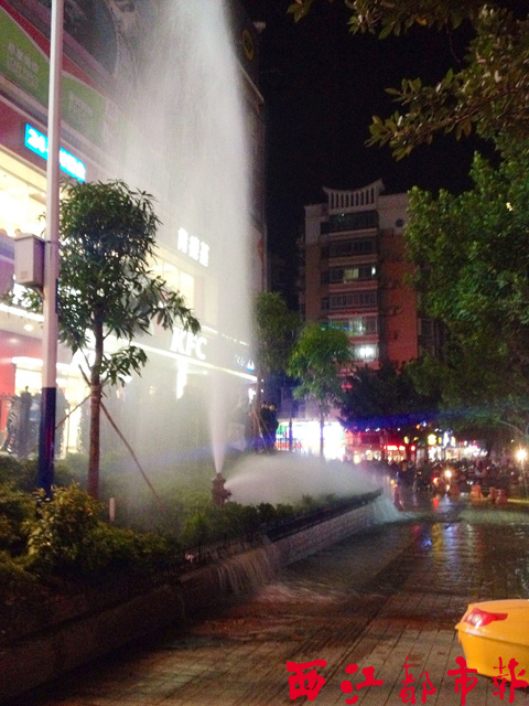 事故現(xiàn)場(chǎng)消火栓噴起的水柱高達(dá)三四米。