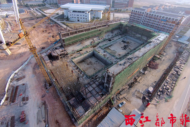 ????12月24日,從空中俯瞰建設中的梧州市游泳(跳水)館,游泳館已初顯規模。
