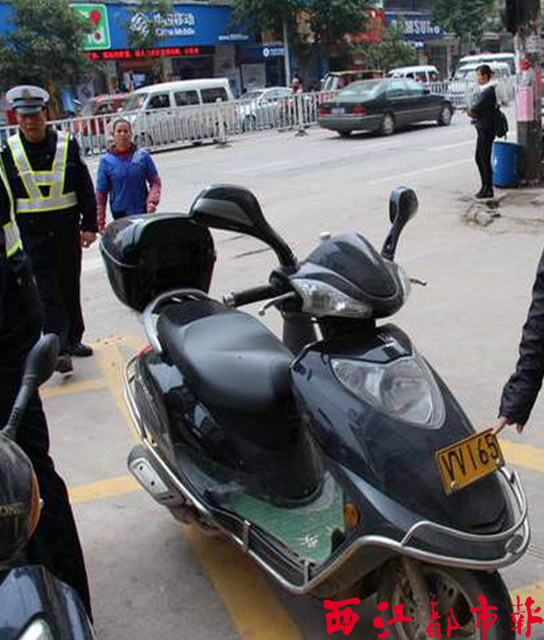 ????據介紹,當天上午9時許,龍圩交警大隊的民警正在龍圩區龍城路進行交通違法整治活動。民警在攔下一名存在不戴安全頭盔駕駛的摩托車時,發現該車牌為“桂DW165”的黑色輕便摩托車有些不對勁。于是,民警開始對該車的車牌進行仔細檢查,結果發現車輛前后車牌的兩個英文字母之間的空隙,被一塊黑色不干膠紙給貼住了。