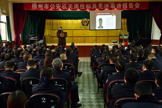 梧州零距離網訊 為大力培育和踐行社會主義核心價值觀,充分展示全市公安機關開展黨的群眾路線教育實踐活動成果,弘揚我市廣大公安民警愛崗敬業、忠于職守、服務為民的精神,充分發揮先進典型的示范作用,引導全市公安民警從身邊人、手頭事做起,激發工作熱情,營造你追我趕創先爭優的氛圍。12月25日下午,梧州市公安局在市局五樓禮堂舉辦了全市公安機關崗位標兵先進事跡報告會。市局各支隊、機關科室及3個城區分局等單位共240多人到會聆聽報告。