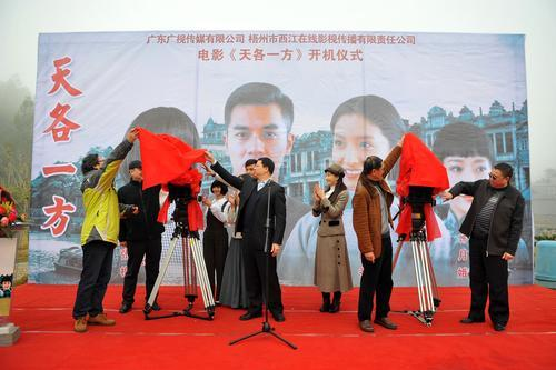 ????上世紀三十年代的梧州市,連綿不斷的騎樓古樸典雅,街道燈火闌珊,商販貨攤云集,一段刻骨銘心的愛情故事悄然發生……12月30日,由梧州市文化新聞出版廣電局主管的梧州市西江在線影視傳播有限公司,與廣東電視臺下屬的廣東廣視傳媒有限公司聯合攝制的反映西江文化、嶺南文化的電影《天各一方》,在龍圩區大坡鎮李濟深故居門前廣場舉行開機儀式。