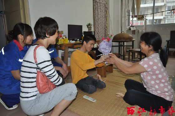 當(dāng)天,梧州日報社團(tuán)委、中石化梧州石油分公司團(tuán)委、大塘街道辦事處團(tuán)工委和豐業(yè)社區(qū)的志愿者來到梁琪位于豐業(yè)花園的家中,協(xié)助他圓了在母親節(jié)送禮物給媽媽的夢想。
