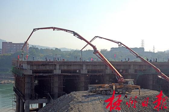 ??? 梧州日報訊(記者 黃金銘 通訊員 吳柏松) 2014年12月31日,大利口碼頭1、2號泊位第三結構段面層澆筑完成。至此,該碼頭工程完成兩個泊位的主體結構施工,也圓滿完成了年度建設目標任務。