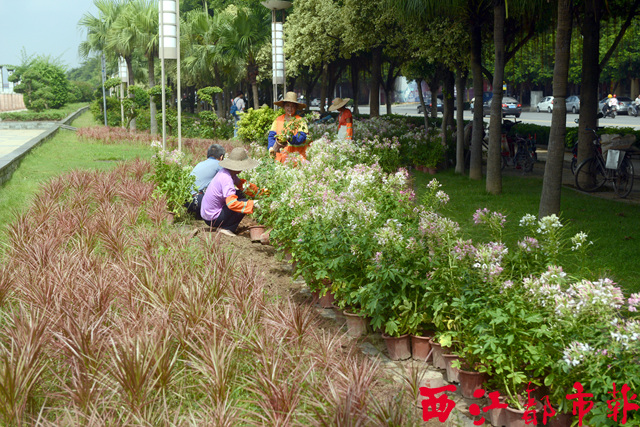 ????為了保持西堤公園的綠化效果,綠化部門根據季節的變化及時對公園內的綠化景觀植物或調整、或增植,以保證綠化帶景色四季宜人。(資料圖片)