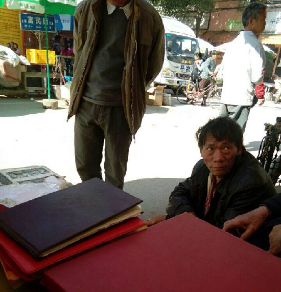 ????圖4 2014年12月31日,歐德福在新圩街上與居民交流非法博彩。街坊鄰里都說歐德福很喜歡研究非法博彩,說起來像背書般流利,他會把“研究成果”告訴街坊,“慫恿”他們買,若他人中獎,會“打賞”一點給歐德福。圖片由“天使之戀”提供。