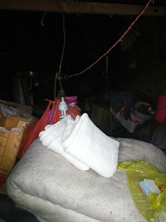 ????圖7 歐德福的廳放著棉被等物品,依稀看到后面有洗漱用品。