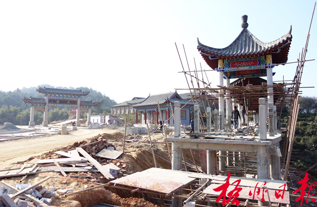 ????在蒼梧縣六堡鎮(zhèn),六堡茶文化園的牌坊和觀景廊亭目前正建設(shè)中。