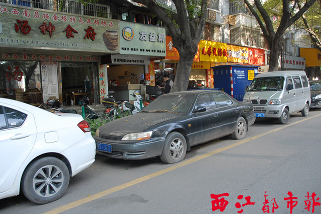??? 在新興一路大塘市場對面馬路的臨時停車位,一輛掛著外地牌照的小車四個輪胎都沒了氣,疑似長期占位的“僵尸車”,希有關部門將其清理。 黃健泉/攝