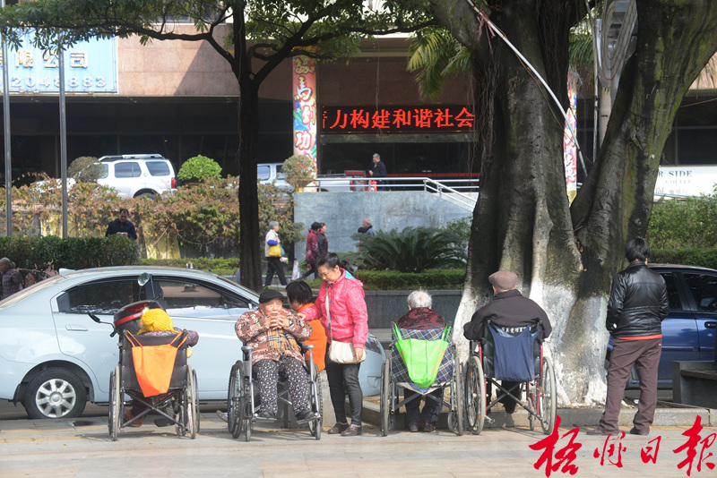 1月13日,幾位老人在鴛江麗港廣場曬太陽。