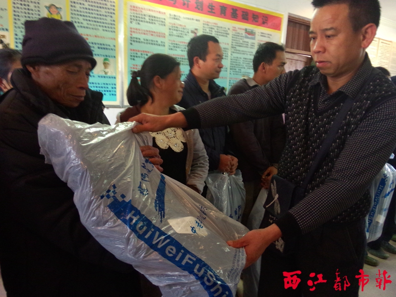 ??? 西江都市報訊(記者 黃穎盈 通訊員 蘇品紅)滿載御寒物資的車輛,迎著白霧穿行在蜿蜒的公路上。1月14日早上,梧州市萬秀區(qū)民政局連同夏郢鎮(zhèn)民政部門的工作人員前往轄區(qū)的平安村,向49戶困難村民發(fā)放冬令救助物資。