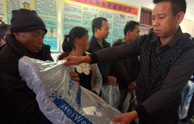 同時(shí),梧州市國(guó)土資源局的職工也為路垌村的困難戶籌集了3633元的愛心資金以及一批過冬衣物。