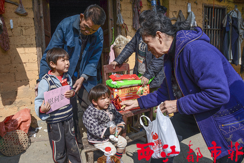 1月17日,愛心單位和社會(huì)人士帶著這些物資來到路垌村,分成4個(gè)愛心小分隊(duì),慰問了路垌村的8戶貧困家庭。