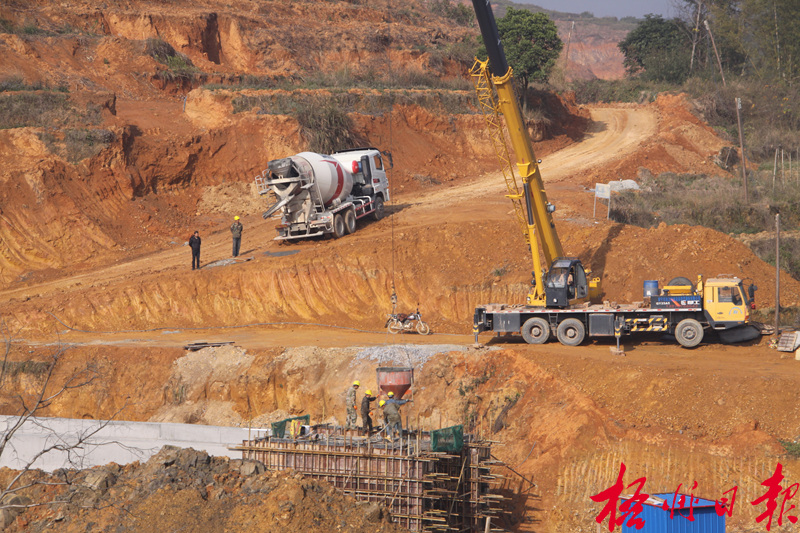 1月17日,在柳州至梧州高速公路藤縣段,施工隊正在建設交通涵洞。